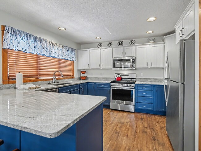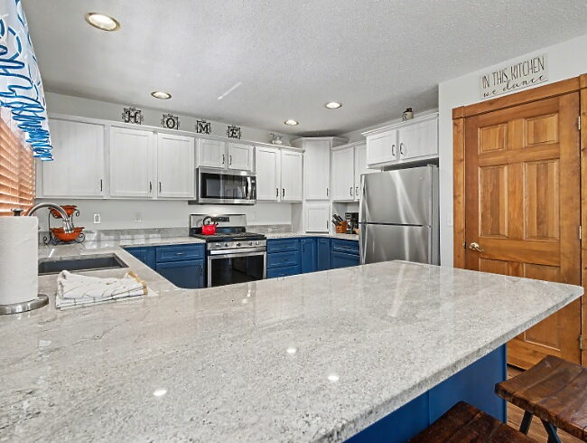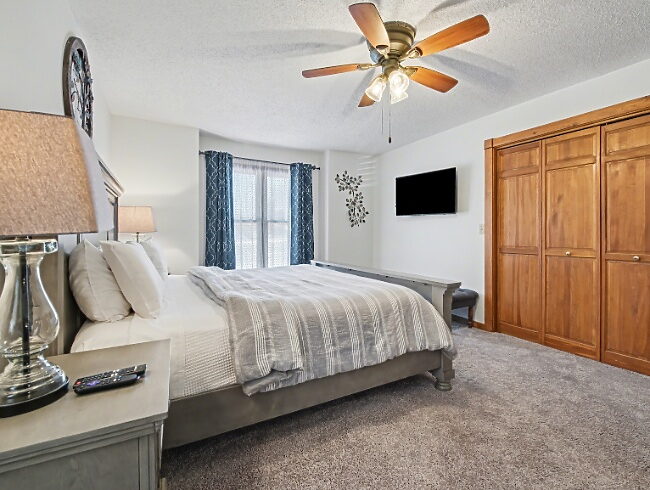 This 5-bedroom 4-bathroom easy access home is conveniently located in the core of the resort. The master suite has a king bed and a private bath with oversized jetted tub and is located on the main level of the home. A second bedroom is located on the main level and has a shared bath. The upper level consists of an oversized bedroom with a king bed and a private bath. Two additional bedrooms are located in the lower level, one with a queen bed and a second with two queen beds, featuring a shared bath.