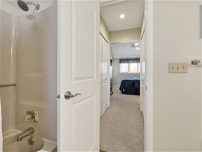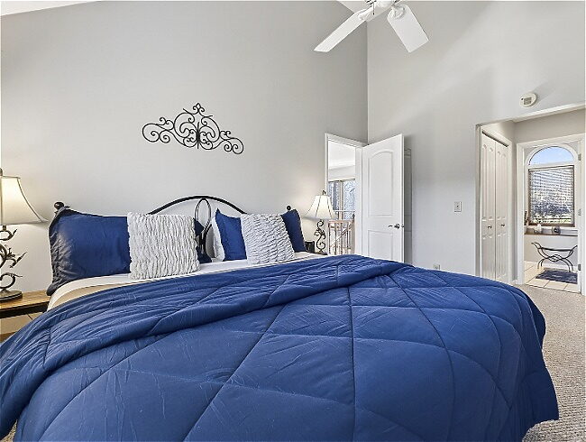 - King bed with private bath – Upstairs